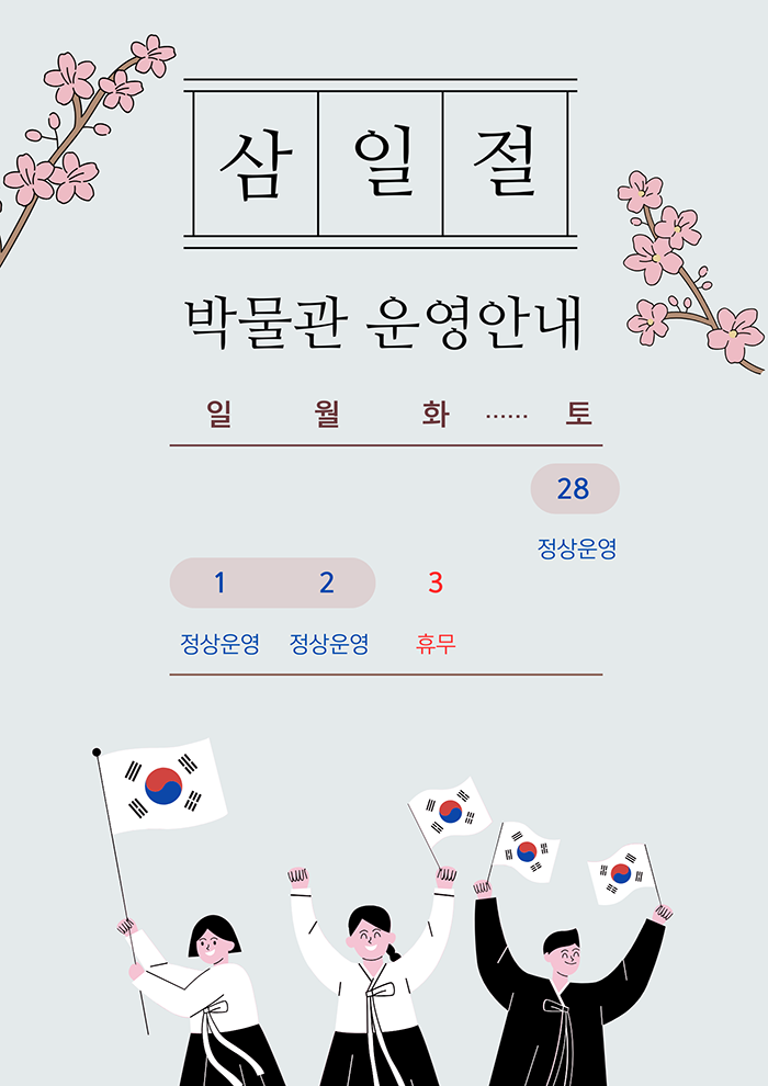 3월2일(월)은 박물관 휴무일이지만 대체공휴일으로 정상운영합니다.